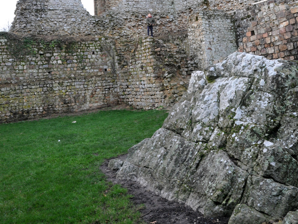 Le Grès armoricain affleure aussi dans le château : des bancs quartzitiques riches en Skolithes, à pendage 30°N, sont visibles à l’intérieur des ruines du donjon.