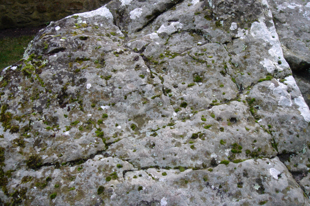 Les trous colonisés par des mousses correspondent à des entrées d’anciens terriers verticaux (skolithes). |