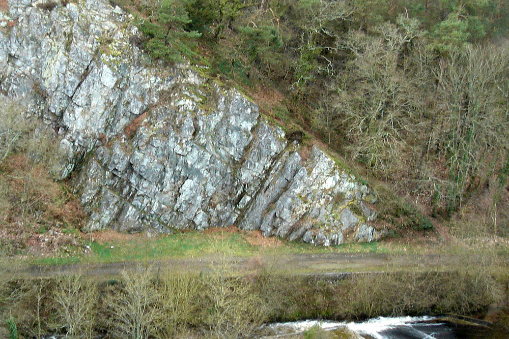 La rive droite de la Varenne offre une coupe complète dans la formation du Grès armoricain sur le trajet de la Voie verte, au niveau de la cluse.
