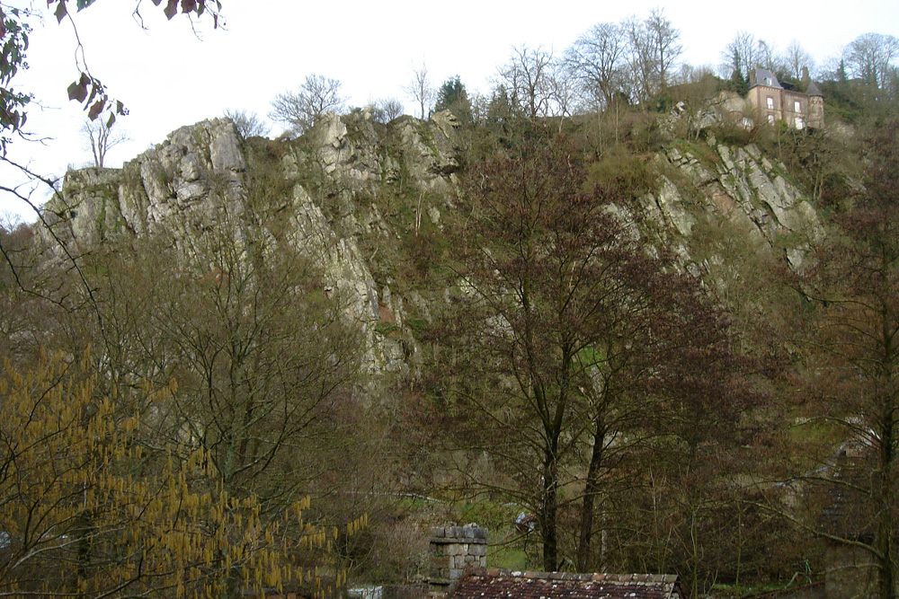 Barre de Grès armoricain de la rive droite de la Varenne (vue depuis le parc du château)