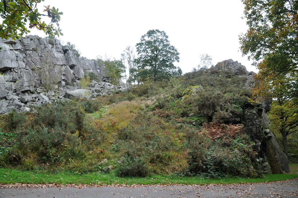 Au-dessus de la première barre, la vire correspond à une épaisseur de 5 m environ de bancs plus minces et moins résistants, en grande partie masqués par la végétation.