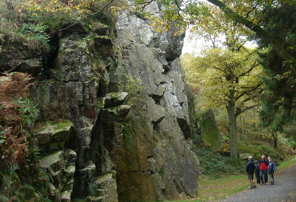 Les grandes surfaces subverticales correspondent à des plans de fracturation. C’est la fracturation du Grès armoricain qui a facilité le passage de la Sonce à travers la barre rocheuse. |