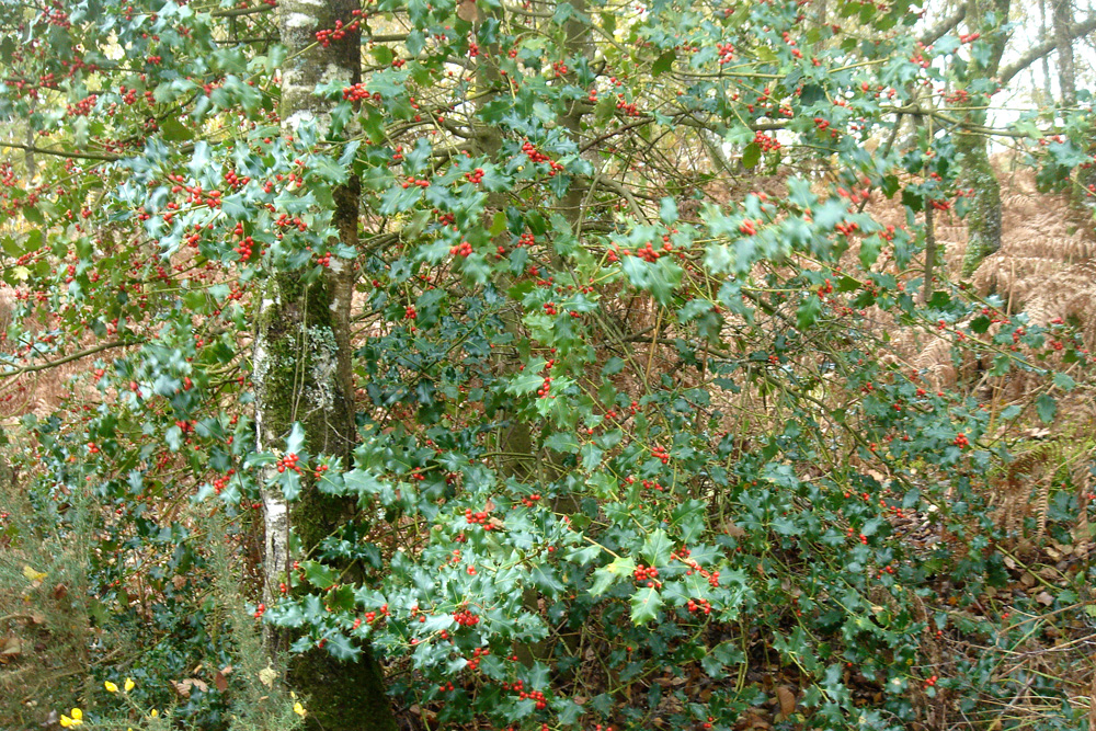Le houx est un arbuste de sous-bois fréquent sur le Grès armoricain. |