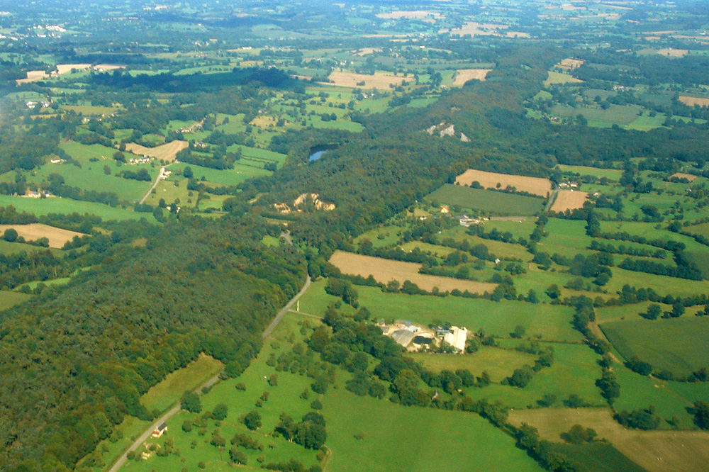 Vue aérienne (jusqu’à Lonlay-l’Abbaye au NE)