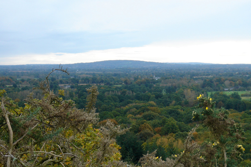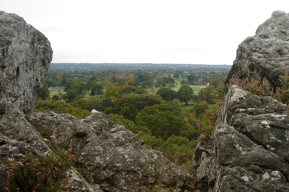 Le socle cadomien vu depuis la barre de Grès armoricain de la Fosse Arthour (vue prise vers le sud) |