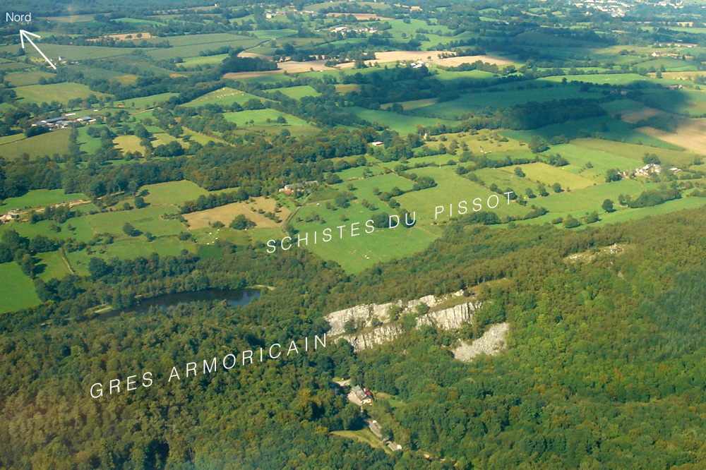 La formation des Schistes du Pissot - ou Schistes à Neseuretus - surmonte stratigraphiquement la formation du Grès armoricain. Elle est constituée essentiellement d’argilites et siltites noires micacées, roches tendres souvent altérées et masquées par la végétation.