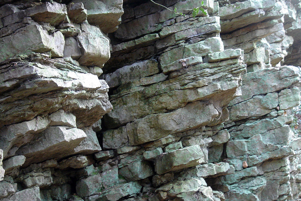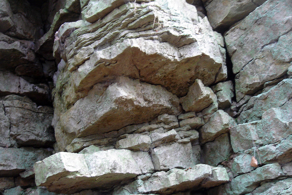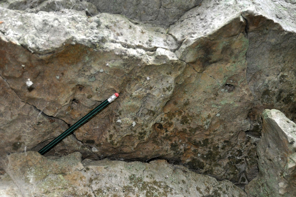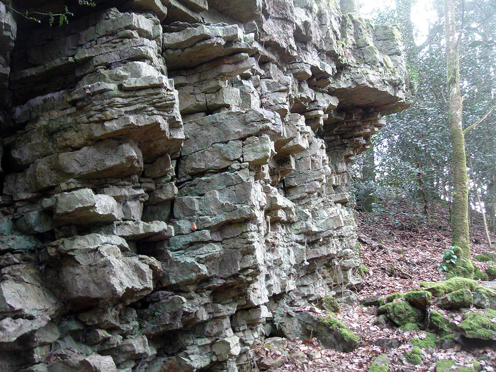 Les affleurements du sentier de la Fée Gisèle présentent de nombreux surplombs qui permettent l’observation de la face inférieure des bancs. |