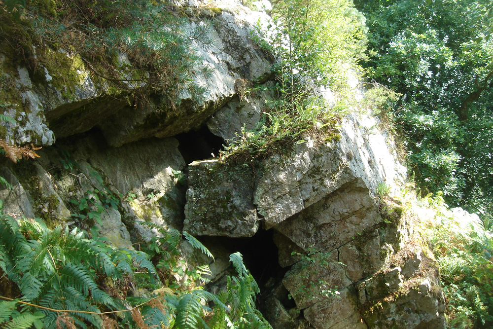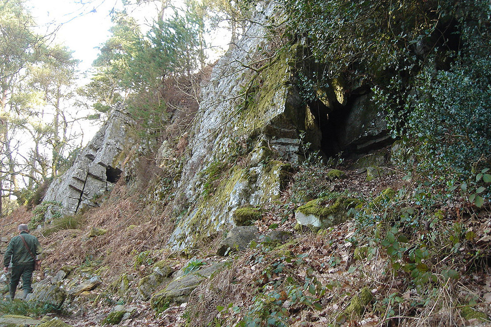 La fracturation intense favorise la formation d’anfractuosités et de cavités, dont la « grotte » de la Fée Gisèle. |