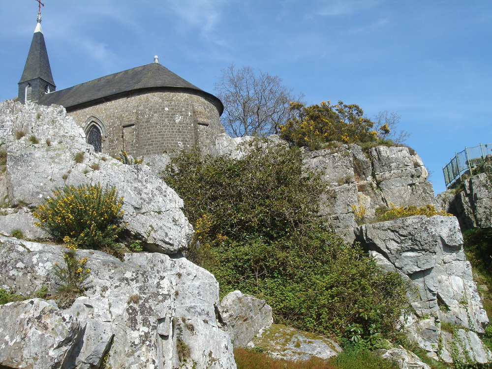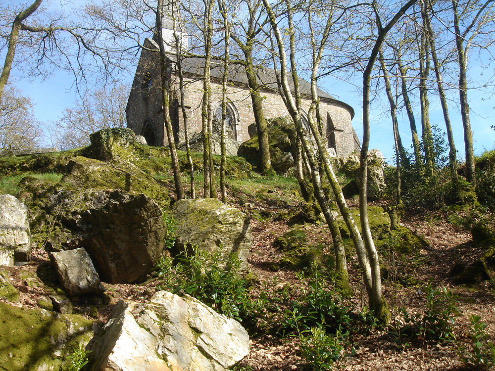 La Petite Chapelle est construite sur un éperon de Grès armoricain situé dans le prolongement des Rochers de la Montjoie (cote 314) à l’Est de la ville de Mortain.