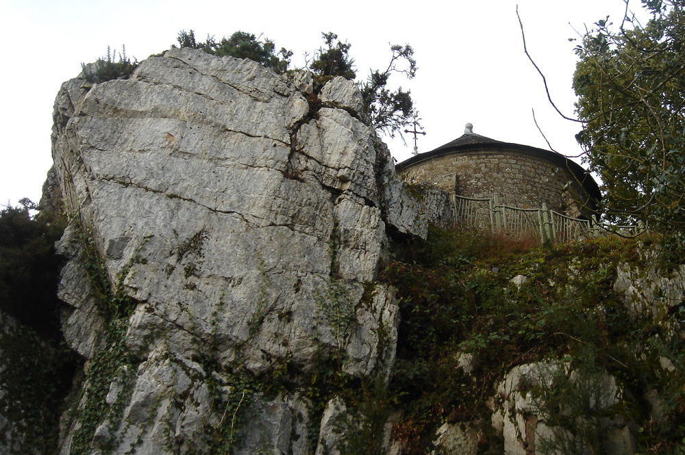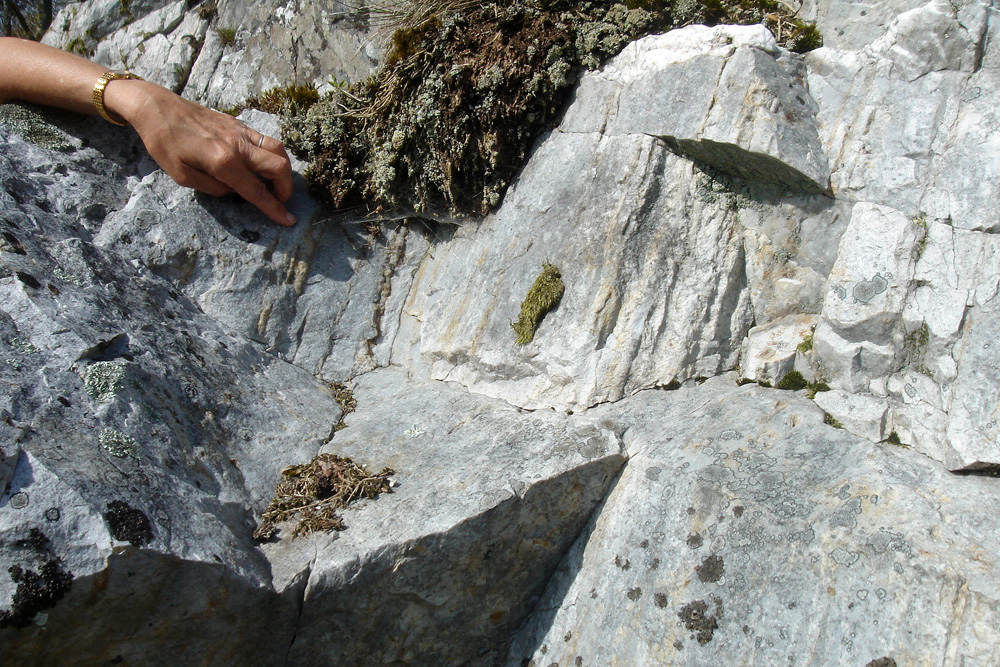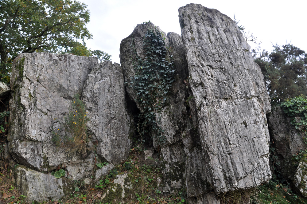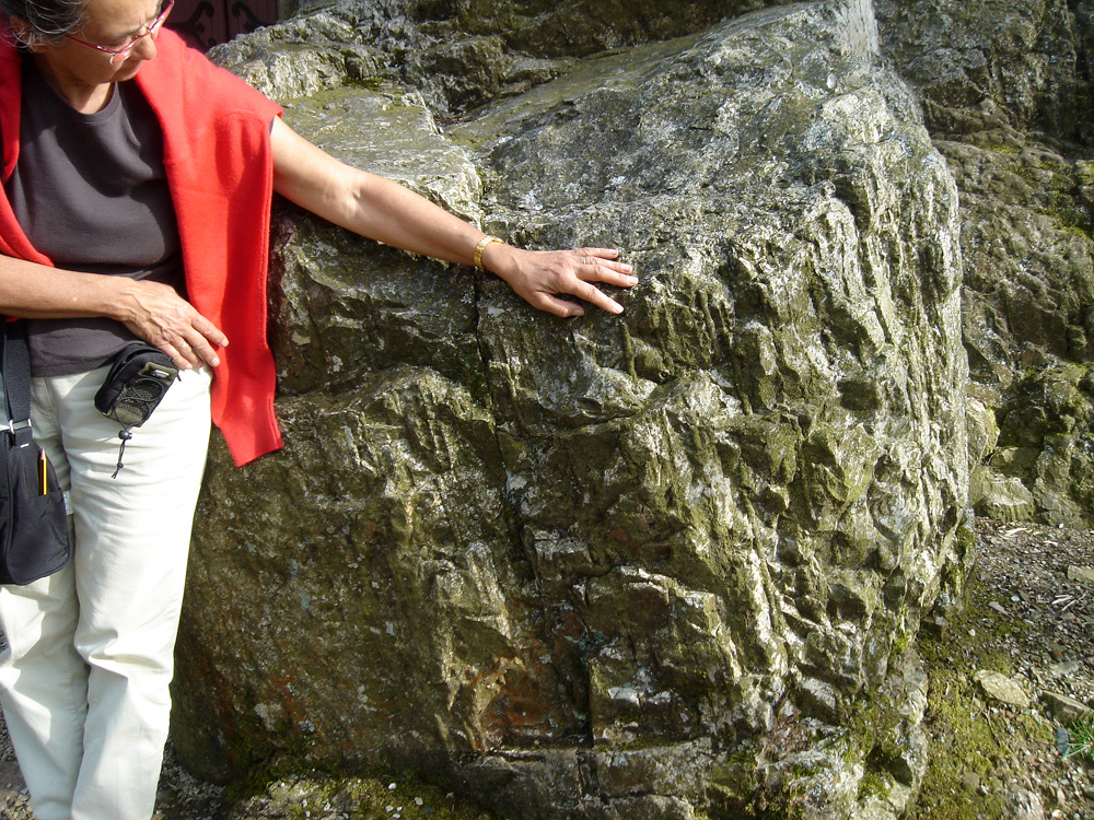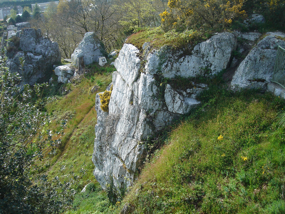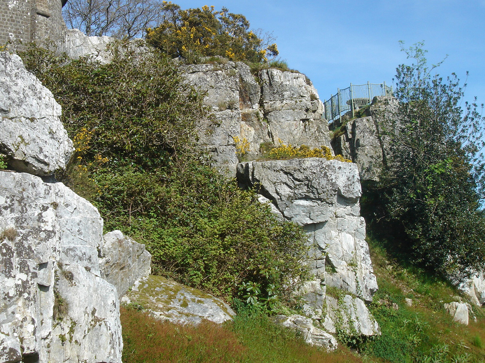 La stratification oblique est aussi visible à la base de cet affleurement situé sur le replat de l’éperon, à proximité de la petite chapelle. |