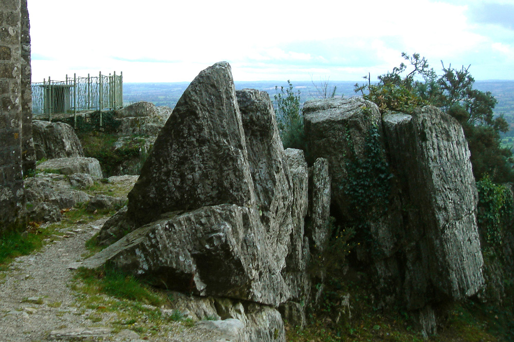 Le Grès armoricain, formation d’âge Ordovicien, est très bien exposé au SE de Mortain, sur le site de la Petite Chapelle, à l’extrémité de la barre rocheuse NS qui domine l’Est de la ville. Il est représenté par environ 30 m de bancs massifs d’épaisseur métrique de grès quartzite blanc. Le site est aménagé en lieu de promenade et de souvenir (combats de juin 1944).