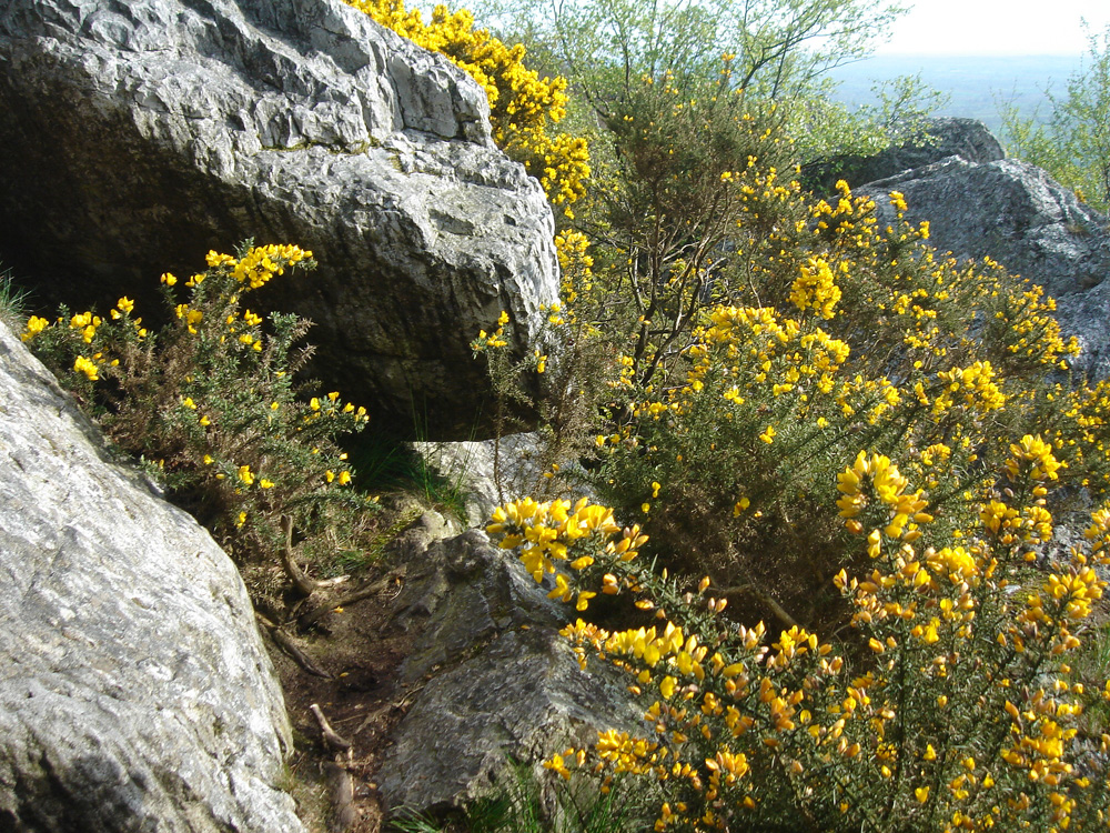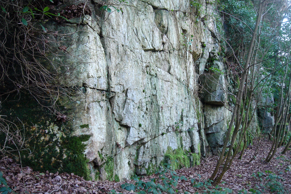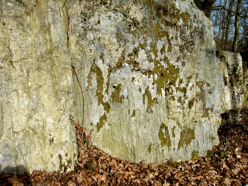 Affleurement de Grès armoricain à la base du Rocher de la Vierge Blanche.