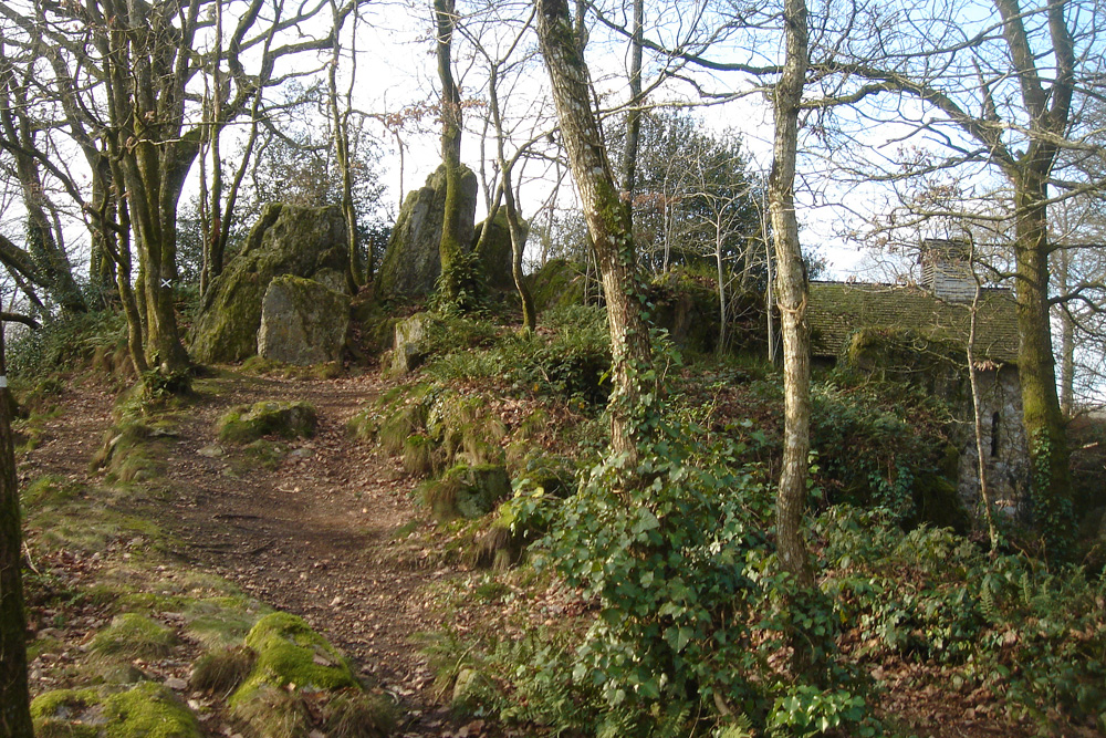Une chapelle est adossée au flanc nord de la crête de Grès armoricain. La chapelle est construite en moellons de Grès armoricain et accolée à un banc massif contenant des Skolithos (terriers verticaux). Le chemin d’accès part de la voie verte à l’Ouest de Mortain.
