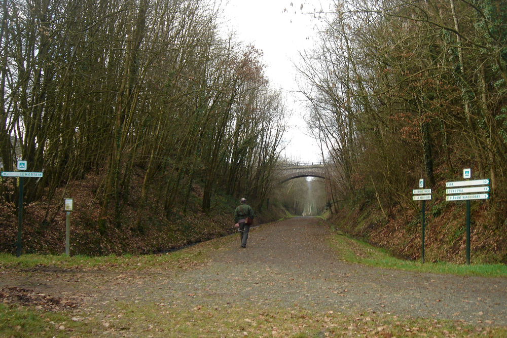 La voie ferrée a été transformée en piste cyclable, sur le trajet de la voie verte qui relie Vire au Mont-Saint-Michel ; elle est inaccessible aux voitures dans ce secteur.