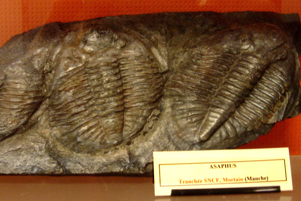 Ces trilobites appartenant au genre Asaphus appartiennent à la Collection de l’espace muséographique de l’Université de Caen ; ils proviennent du gisement fossilifère de la gare de Mortain. Le gisement a fourni de nombreuses espèces de trilobites dont Neseuretus tistani qui a donné son nom à la formation des Schistes à Neseuretus (équivalent des Schistes du Pissot).