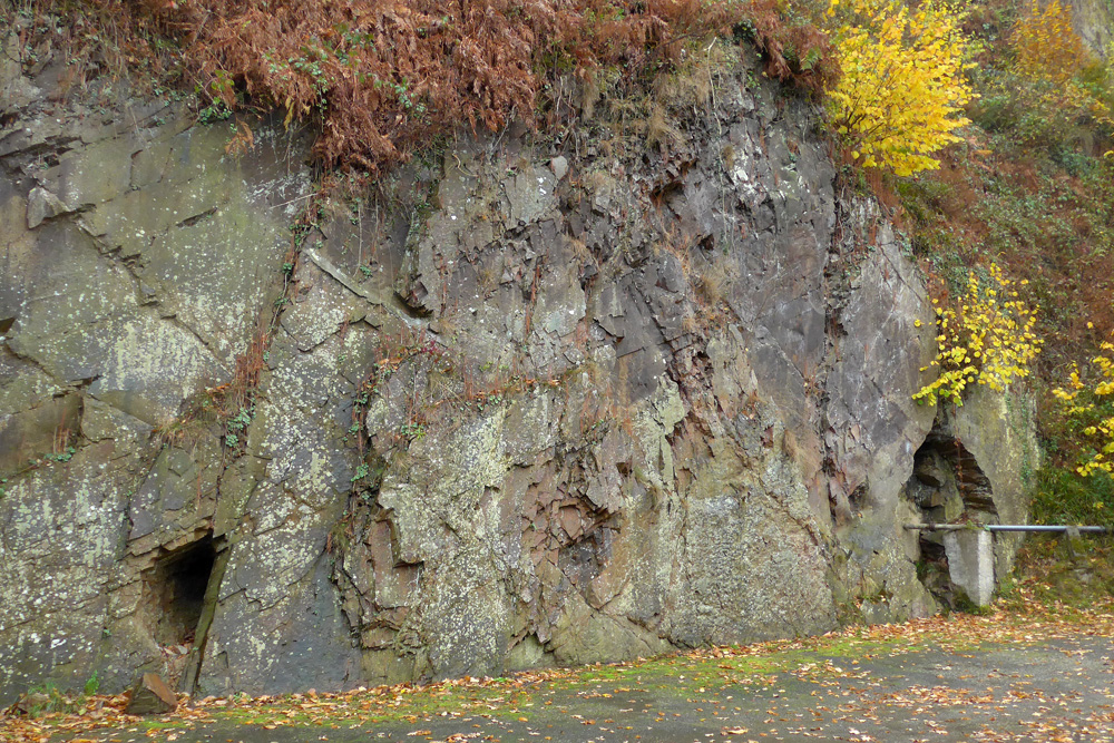 Le Rocher de l’Egouttoir est constitué de Grès armoricain composé essentiellement de quartzites, roches compactes et imperméables ; le Grès armoricain joue le rôle d’aquifère grâce à son réseau de fractures où l’eau peut circuler et être stockée. |