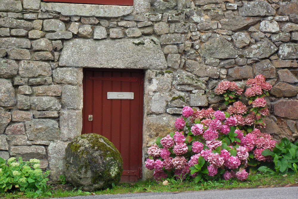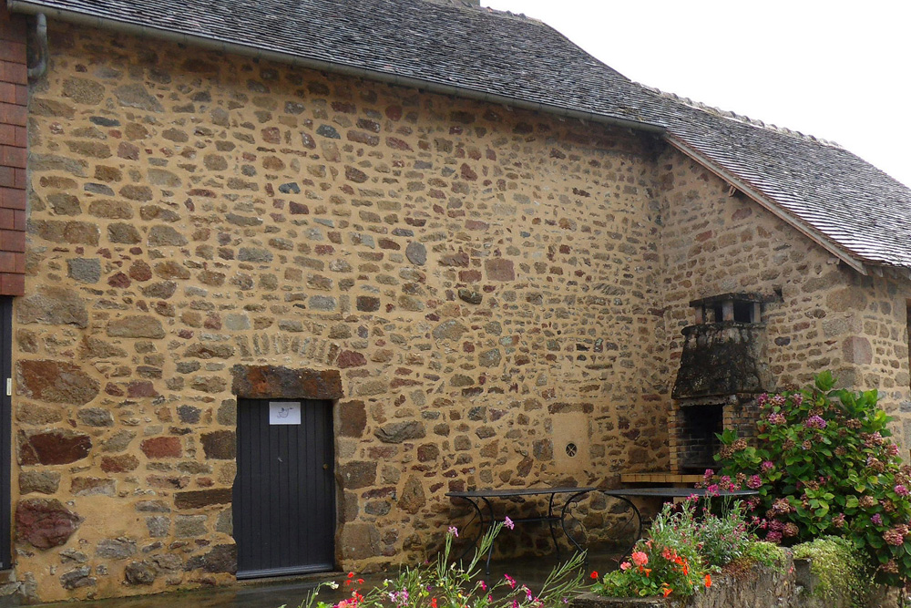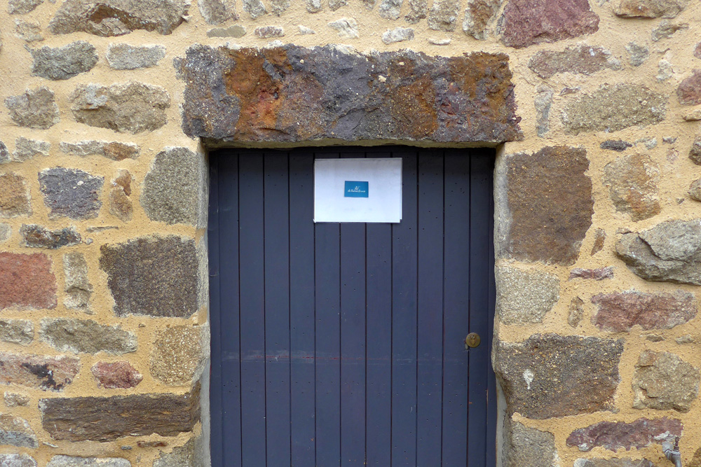 Le linteau massif, l’entourage de la porte et les moellons du mur sont en granodiorite. Une imposante boule, issue de l’altération de la granodiorite, protège la porte.