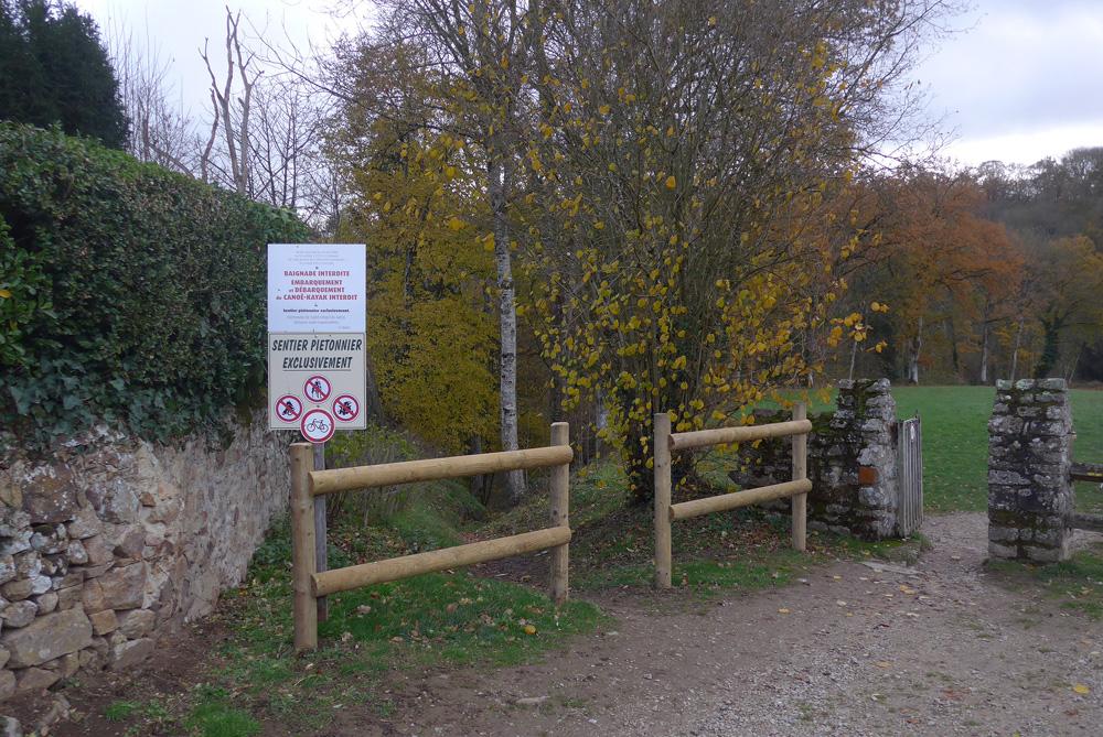 La granodiorite affleure au-delà de l’église, dans le chemin creux qui descend jusqu’à la Sarthe en traversant un petit escarpement boisé. Ce chemin s’ouvre juste avant l’entrée de la prairie où se situe la chapelle Saint-Céneri. A survoler