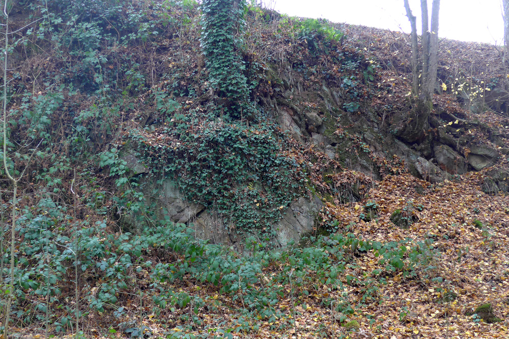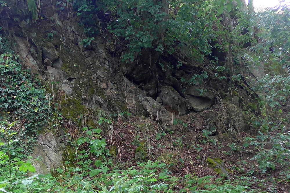 L’affleurement correspond en partie à une ancienne extraction de granodiorite ; il est plus ou moins dégagé selon le développement de la végétation.