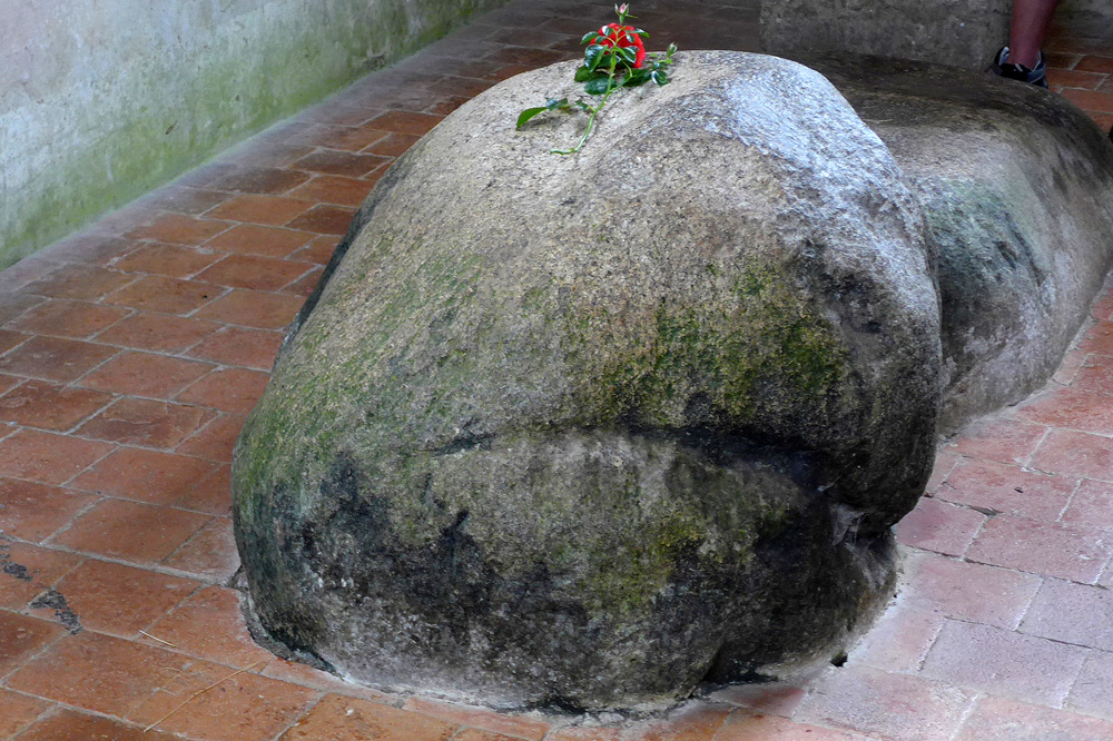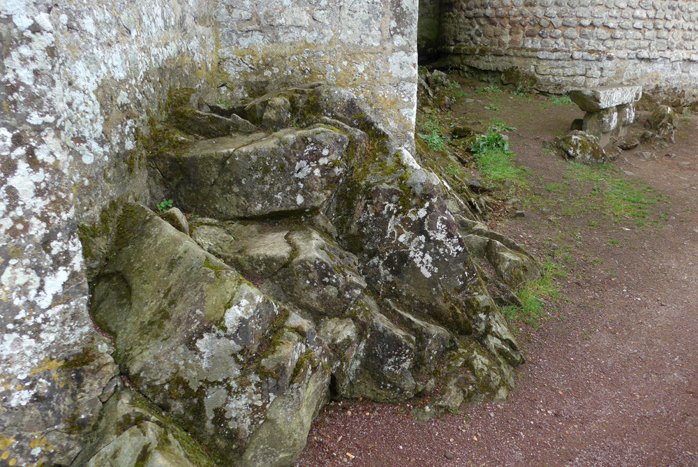 Bloc de granodiorite préservé à l’intérieur de la chapelle Saint-Céneri