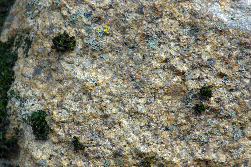Cet affleurement offre quelques surfaces favorables à l’observation rapprochée de la granodiorite.
