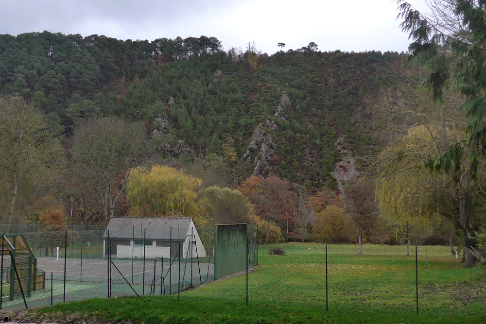 Prolongement des bancs de Grès armoricain dans le versant du Haut Fourché Vue prise 200m plus loin, depuis le terrain de camping |