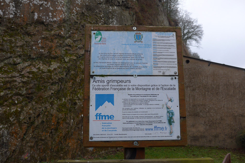 Le site du Gué Plard a été aménagé par le Parc naturel régional Normandie-Maine et la commune de Saint-Léonard pour la pratique de l’escalade. L’affleurement, propriété de la commune, est entretenu régulièrement et protégé de l’envahissement par le lierre et les ronces. |