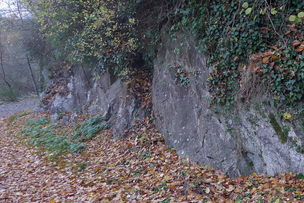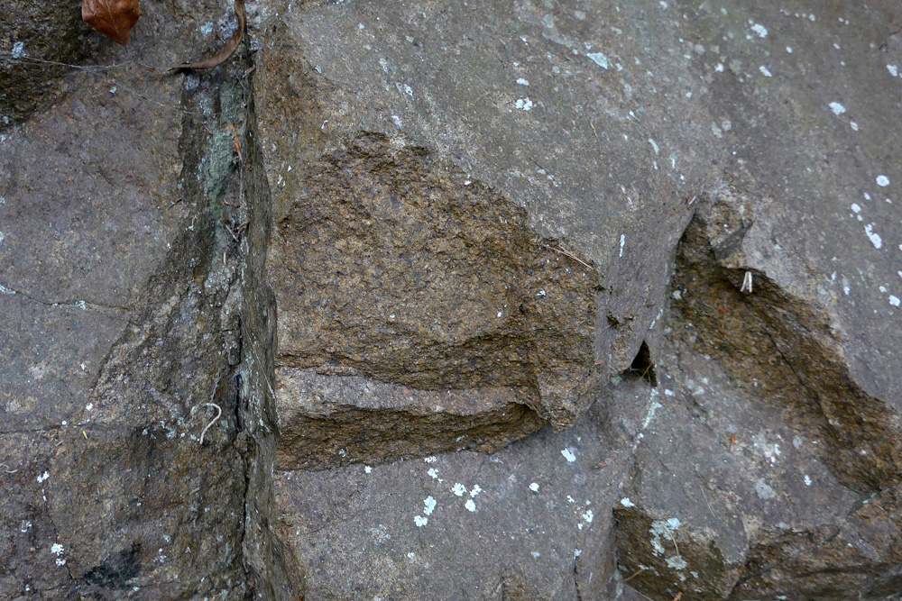 Affleurement de granodiorite au bord du chemin menant au moulin |