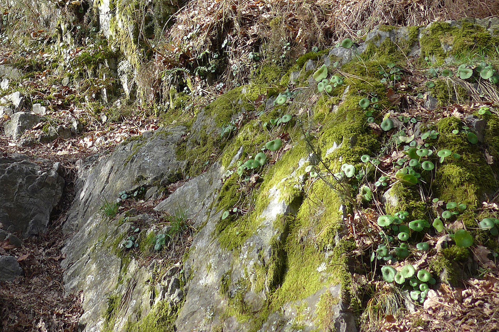 Le Nombril de Vénus (Umbilicus rupestris) est caractéristique des milieux rocheux et siliceux. Il colonise les anfractuosités des rochers de Grès armoricain du chemin de Narbonne (Saint-Léonard-des-Bois) et de la granodiorite de Saint-Pierre-des-Nids.