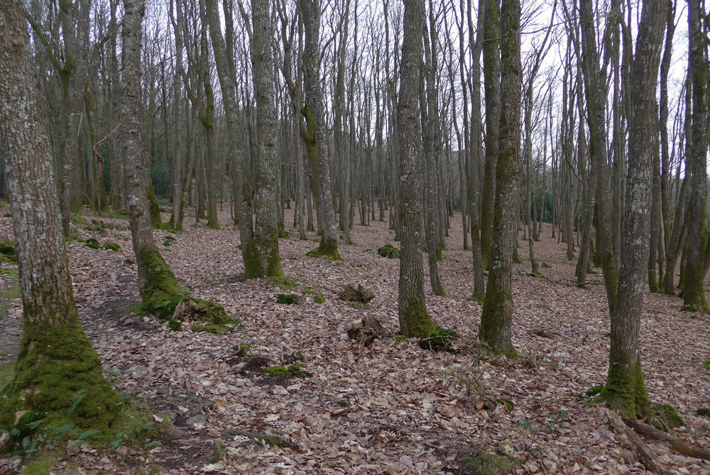 A la sortie nord de Saint-Léonard-des-Bois, au lieu-dit Bel Air, les Schistes du Pissot sont recouverts par un bois de feuillus.