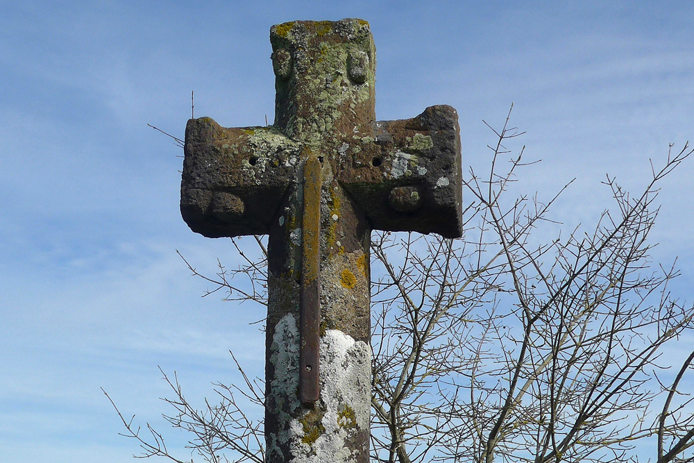 Le grès roussard et la barre métallique de l’axe de la croix présentent la même teinte rouille liée à la présence d’oxyde de fer. |