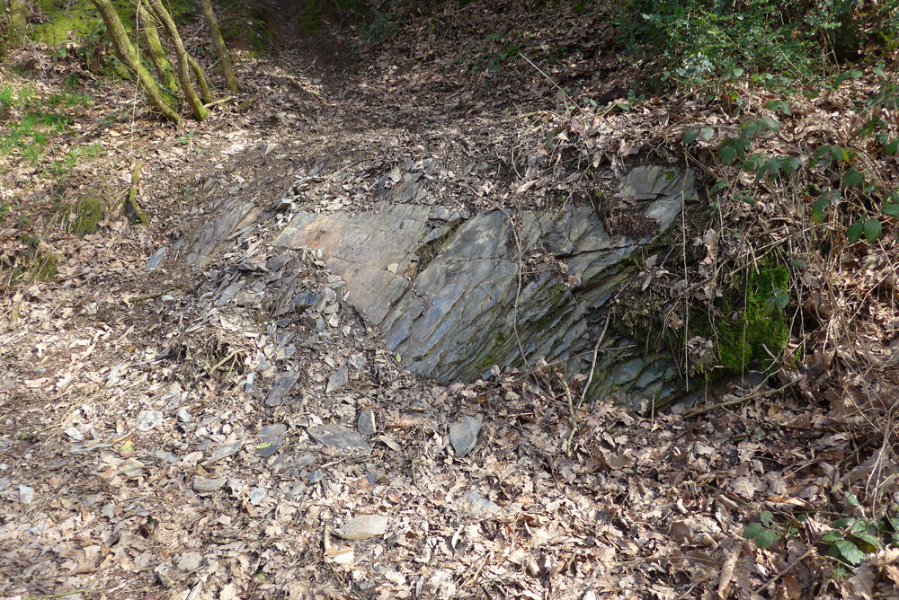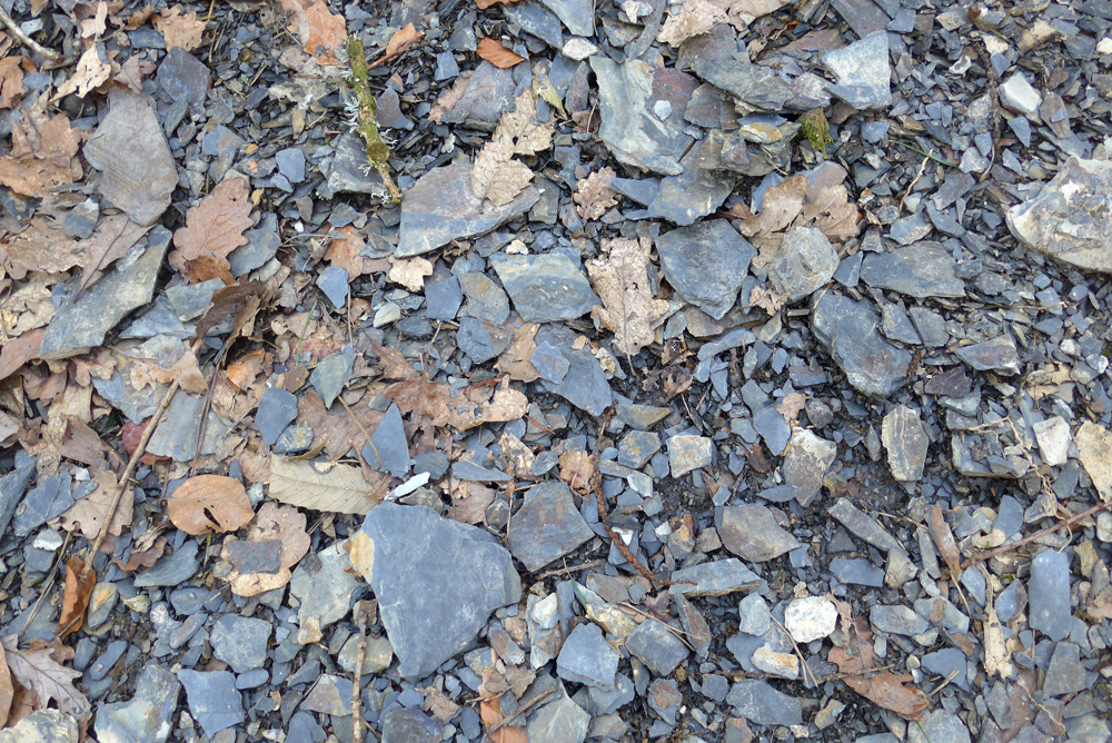 Fragments de schistes ardoisiers dans le talus du chemin qui contourne la butte 193m |