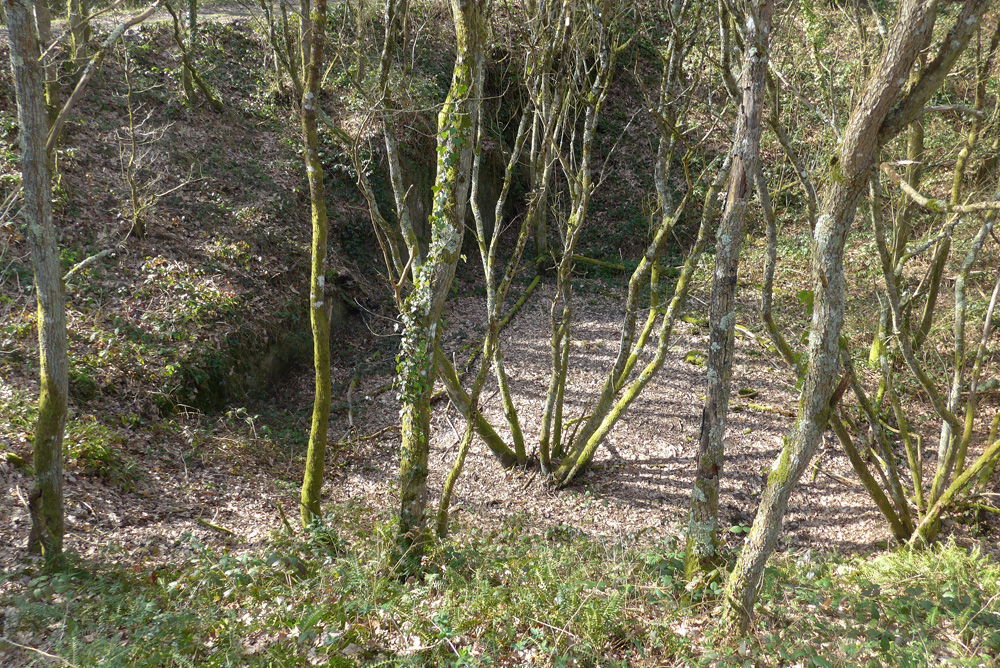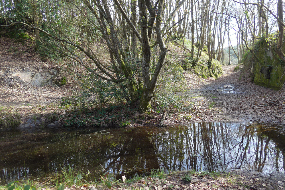 Dans les Schistes du Pissot situés au pied de la butte 193m, la topographie est bouleversée par les sites d’extraction d’ardoises. |