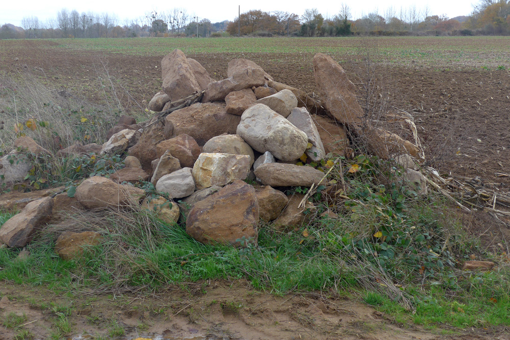 Amas de blocs grès roussard extraits des champs par l’agriculteur