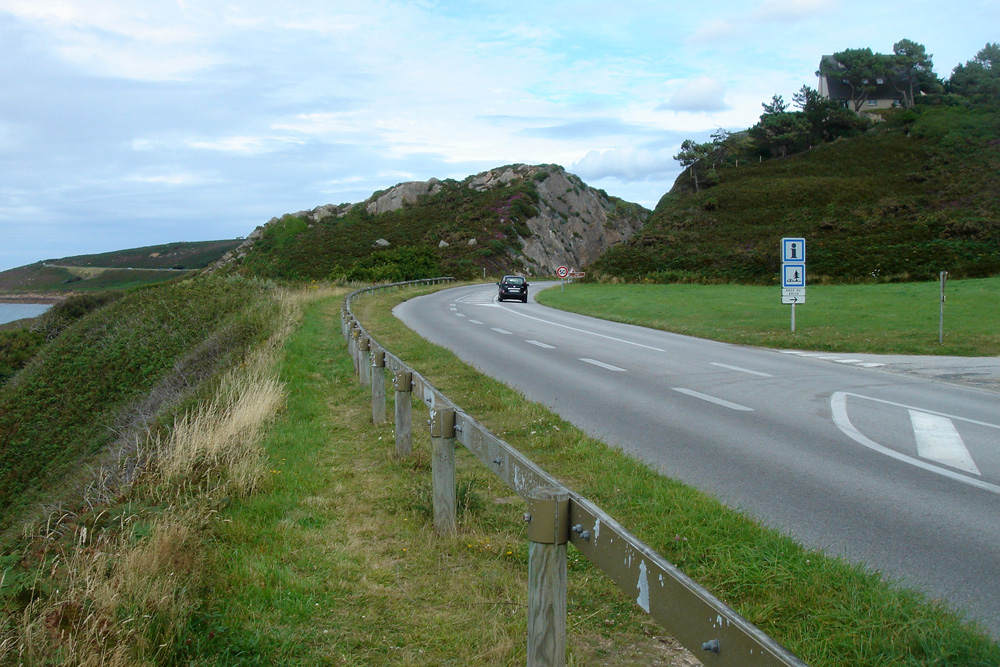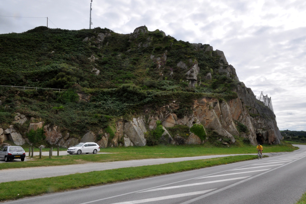 Tranchée routière dans le granite de la pointe du Brick, à la sortie Est de l’aire de stationnement