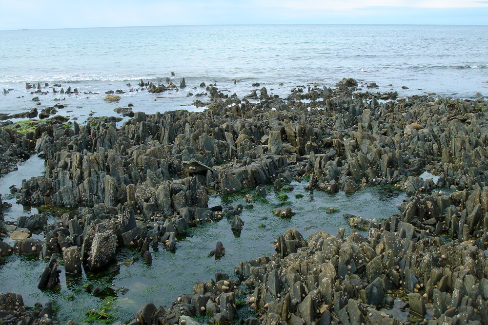 Schistes noirs du Briovérien non métamorphisés sur le platier rocheux de Bretteville-en-Saire