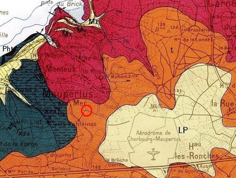 Discordants sur les terrains briovériens et le granite de Fermanville, les terrains triasiques constituent un plateau en partie recouvert de limons ; cette morphologie a été mise à profit lors de l’installation l’aérodrome de Cherbourg - Maupertus.