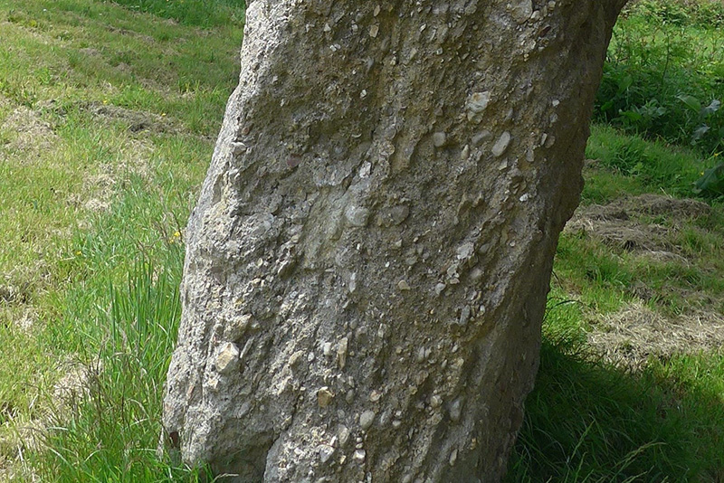 Sur la tranche, la « Grande Pierre » montre des plans de stratification obliques selon lesquels les galets, plus ou moins aplatis, tendent à s’aligner. Cette disposition caractérise une sédimentation fluviatile.