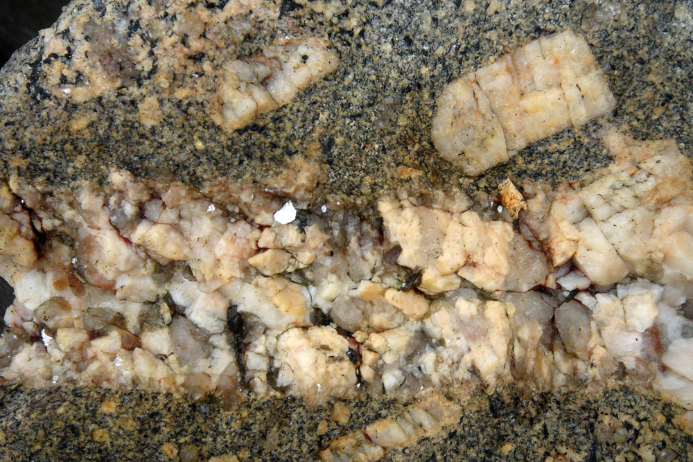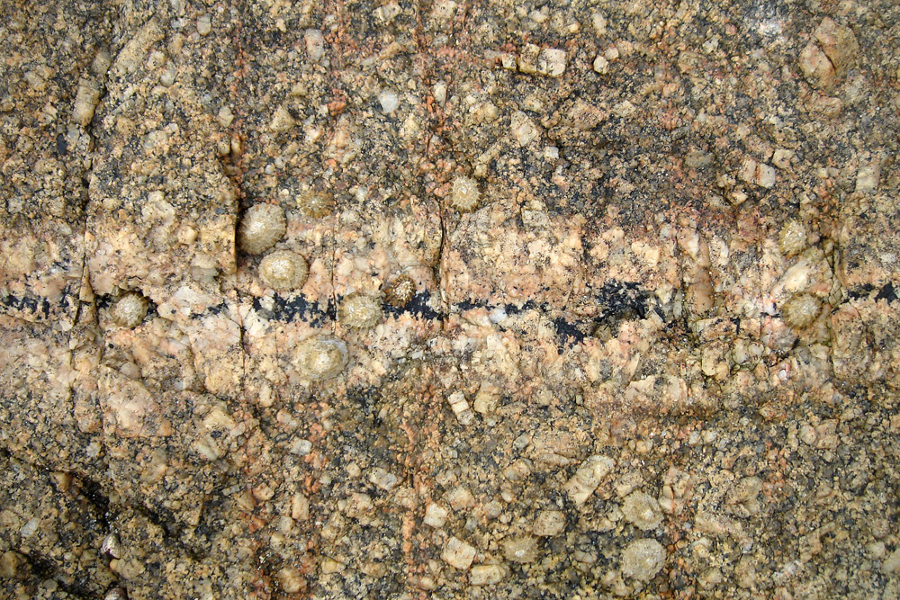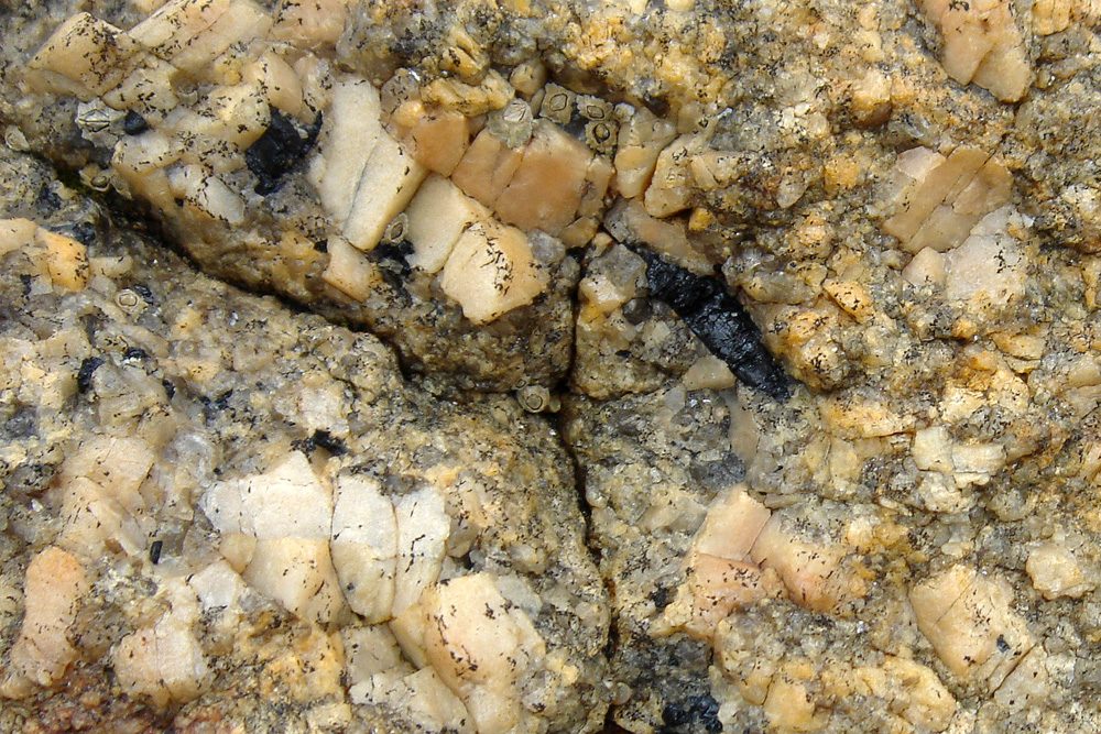 Sur le platier rocheux de Gatteville, le granite de Barfleur est parcouru par des petits filons de pegmatite à tourmaline noire.