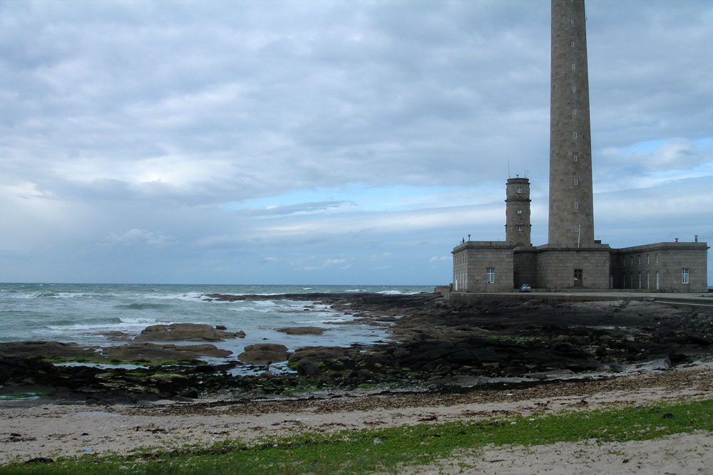 Le granite de Barfleur affleure largement à marée basse sur le platier rocheux de la pointe de Barfleur, au pied du phare de Gatteville.