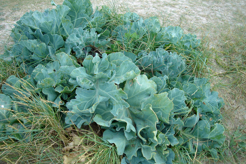 Le chou marin, espèce protégée, s’est installé sur le cordon sableux de Gatteville. |