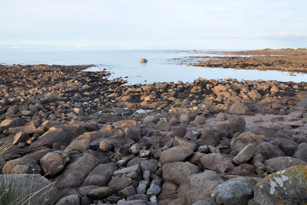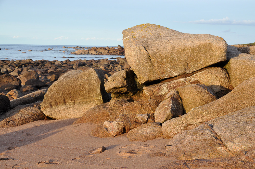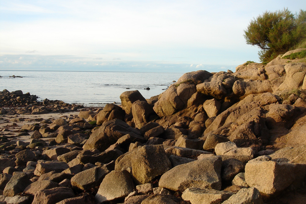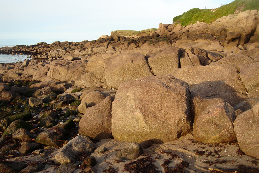 Rochers granitiques aux formes arrondies dans la petite anse de la Visière à l’extrémité Est de la plage de la Mondrée (près du parking)