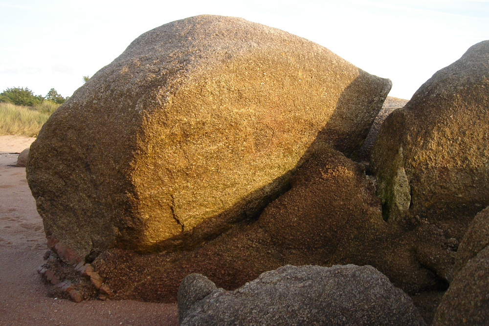 Ensemble de blocs granitiques encore en place sur la plage de l’anse de la Saline