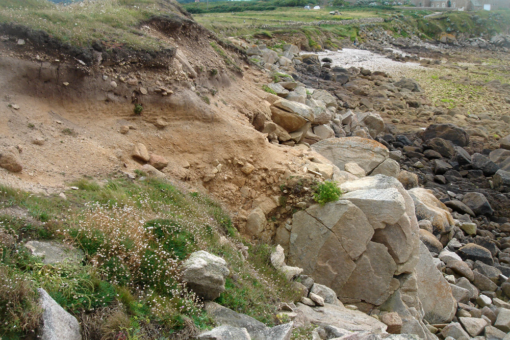 Entre le Vieux Fort et le phare, le granite forme une petite falaise de 1 à 3m de hauteur, surmontée par une arène granitique.