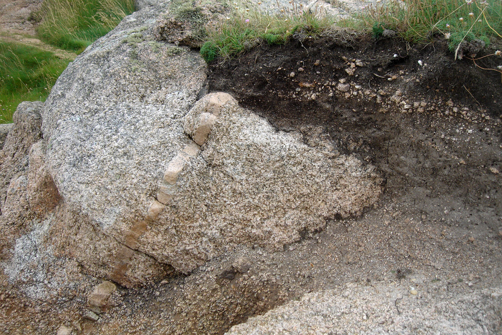 Le granite présente des surfaces planes (ou joints) formées lors du refroidissement du granite après sa cristallisation.