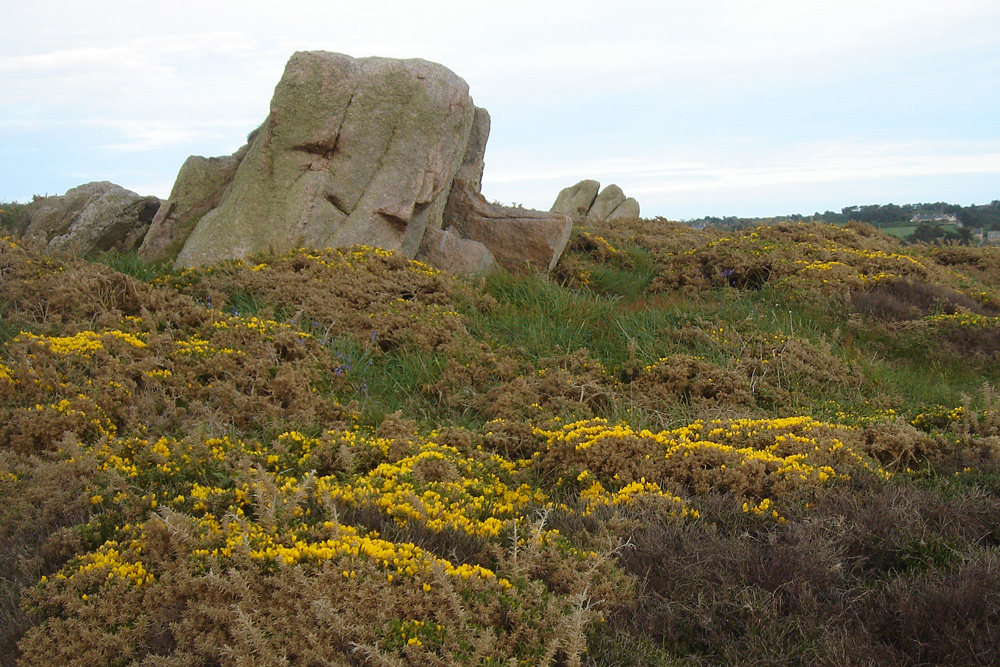 Au NE du Fort et à proximité du sentier littoral, des rochers granitiques émergent d’un tapis d’ajoncs (plante silicicole).