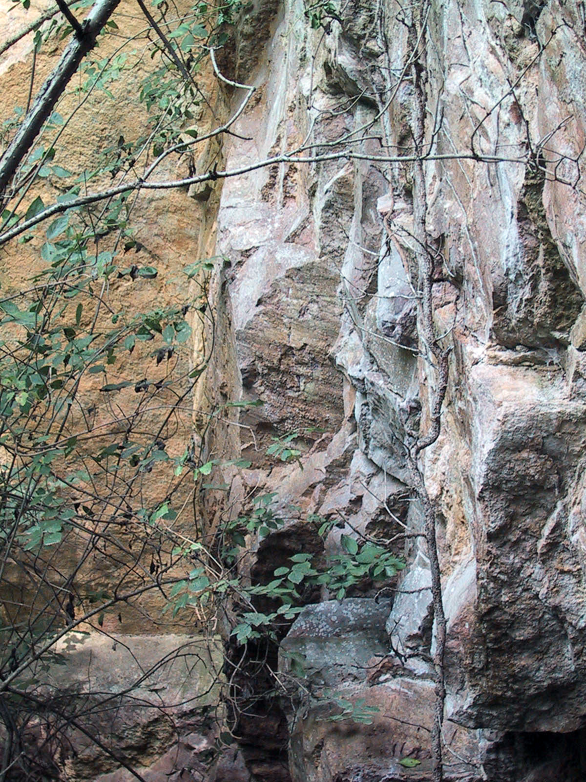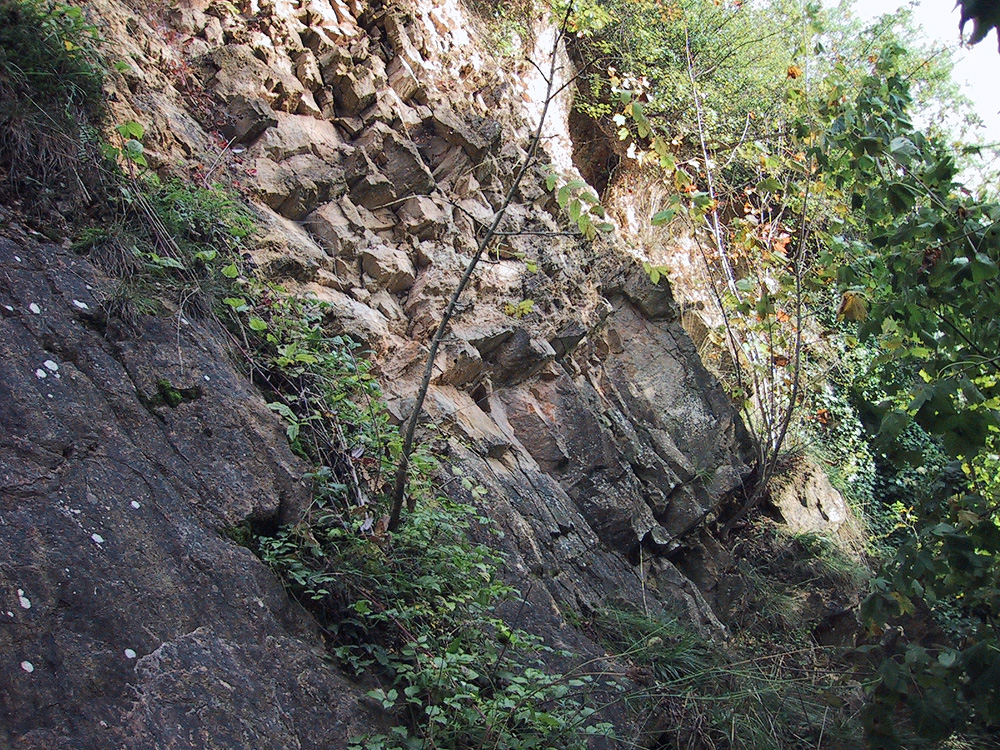 Cette ancienne petite carrière, creusée dans la base du coteau de la Laize, est maintenant embroussaillée et peu accessible.