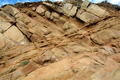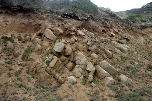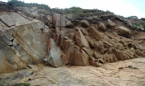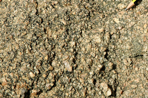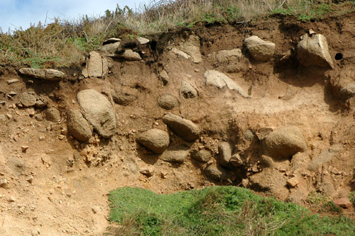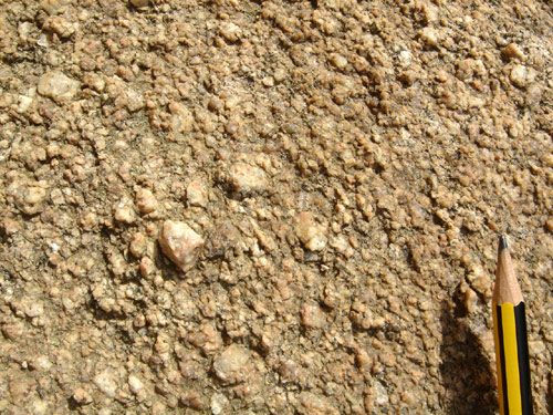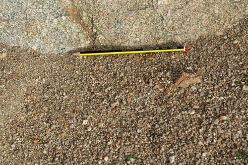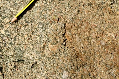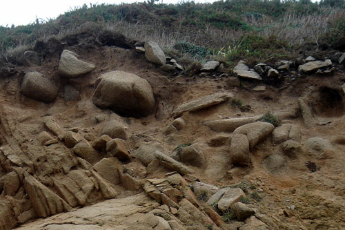 et des feldspaths). Elle contient quelques boules de granite isolées.