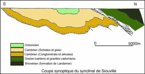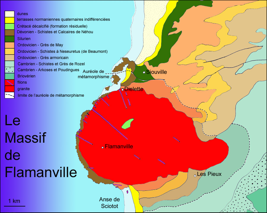 Le site de Flamanville En rouge le granite En bistre, le paléozoïque |