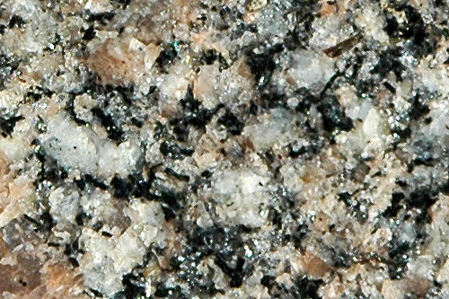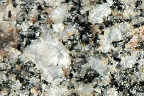 (gris translucide), de feldspath (blanc, rose ou gris), de biotite (noire),